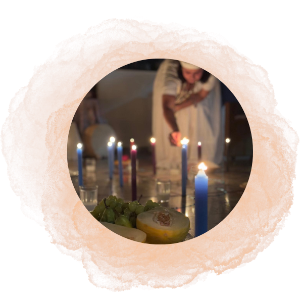 Também conduz vivências com medicinas da floresta, unindo práticas de expansão de consciência, proteção energética, magia natural e sagrado feminino.