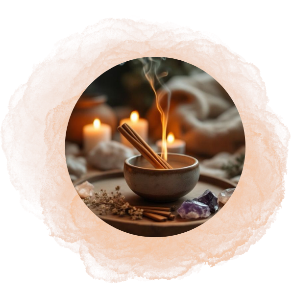 Sua caminhada une formações em Reiki, Radiestesia, Psicologia Transpessoal, Ginecologia Natural, Magia do Fogo, Constelação Xamânica — e principalmente, a sabedoria ancestral das mulheres que vieram antes, das ervas que sussurram e da espiritualidade que guia com amor.